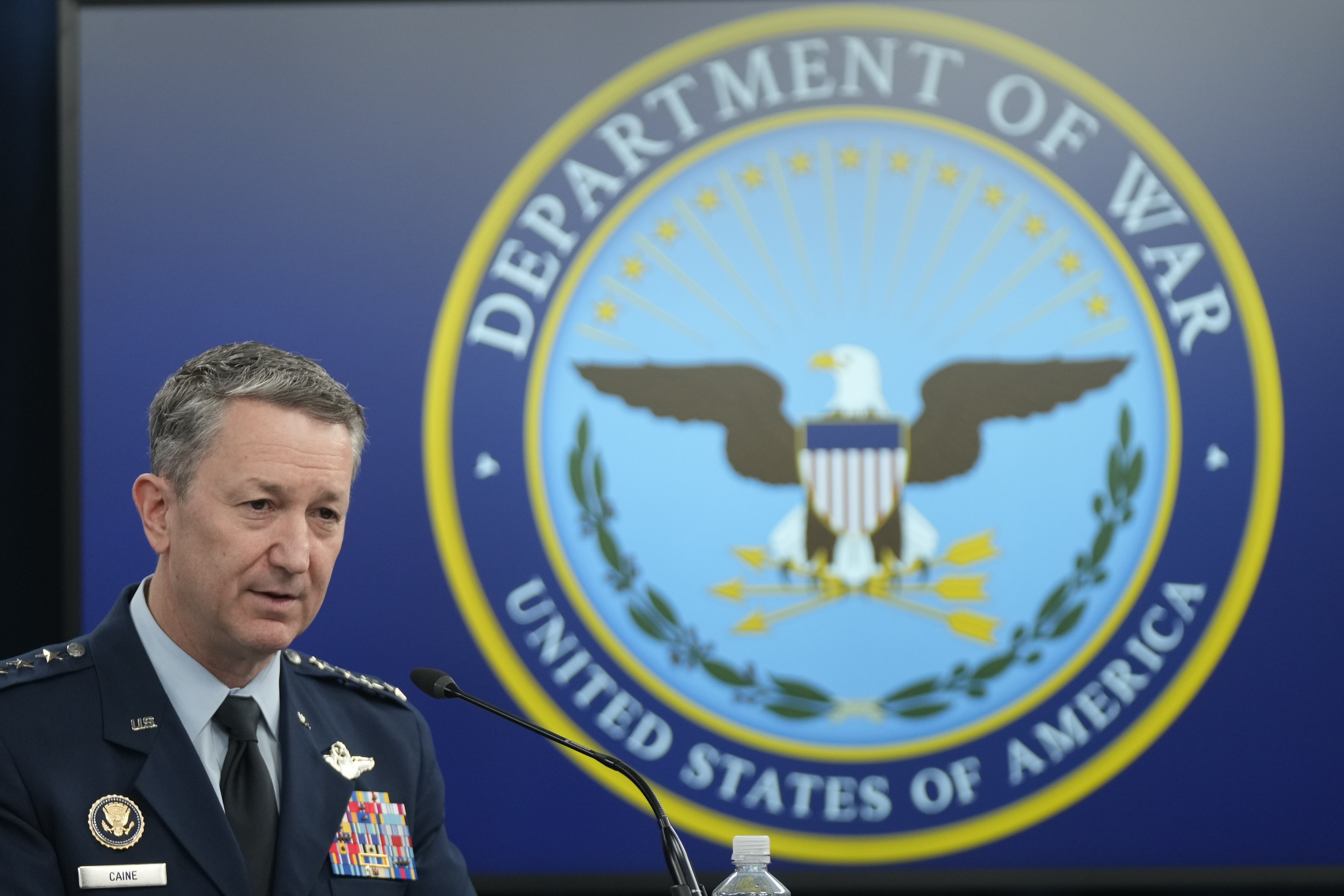 Chairman of the Joint Chiefs of Staff Gen. Dan Caine and Defense Secretary Pete Hegseth spoke to reporters at an on-camera media briefing Monday.